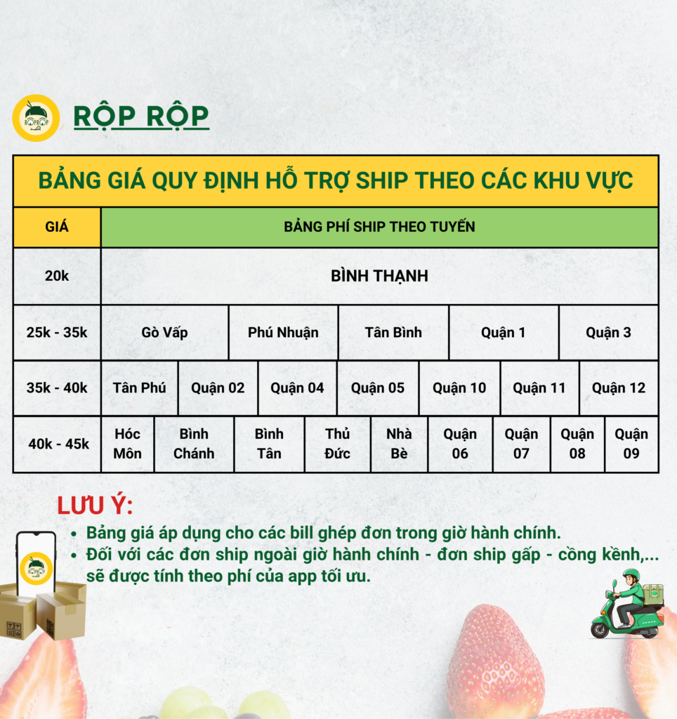 BẢNG GIÁ HỖ TRỢ VẬN CHUYỂN TẠI KHU VỰC TP.HCM