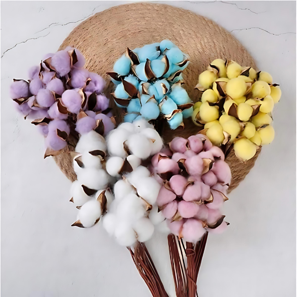Hoa bông gòn không chỉ có một lớp áo trắng thuần túy, tinh khôi, mà còn có thể thay áo mới bằng cách nhuộm màu. Ngoài ra, đây cũng là một loại cành rất được các chị em ưa chuộng để trang trí, decor nhà