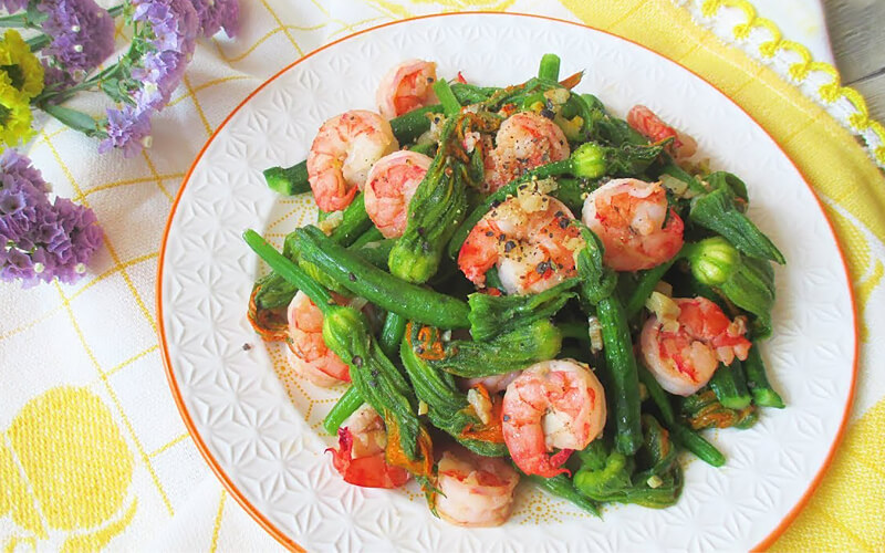 Công thức làm món này cũng vô cùng đơn giản, bạn chỉ cần phi thơm tỏi rồi bỏ tôm bóc vỏ và bông bí vào xào chung, nêm nếm gia vị cho vừa ăn là có thể thưởng thức.